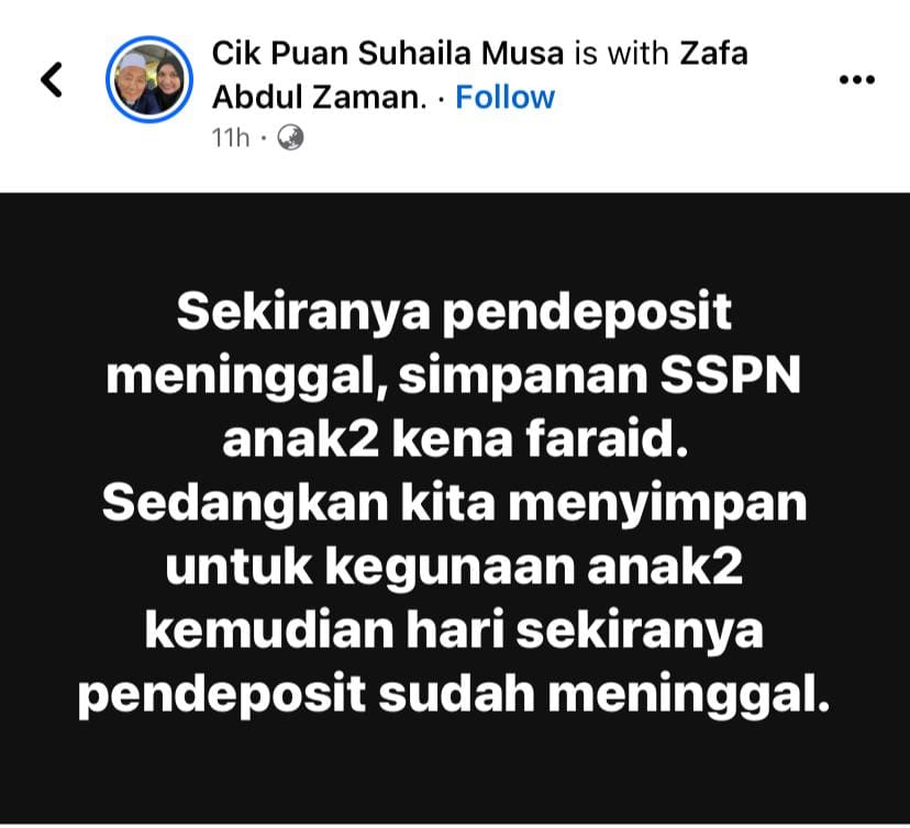 Semoga ada penambahbaikkan bagi SSPN supaya jelas isu pengamanahan dan penghibahan ini. Semoga penjelasan ringkas ini memberikan satu input baru kepada kita semua sebagai pendeposit untuk anak-anak.